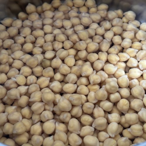 To cook chickpeas from scratch, start with dried chickpeas – easily found in supermarkets or online, and long lasting in the cupboard. You’ll also need plenty of water: first for soaking, then for gently simmering the chickpeas until soft and tender.